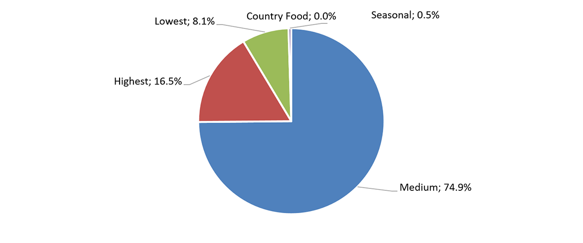 | Province or territory | Medium | Highest | Lowest | Country Food | Seasonal |