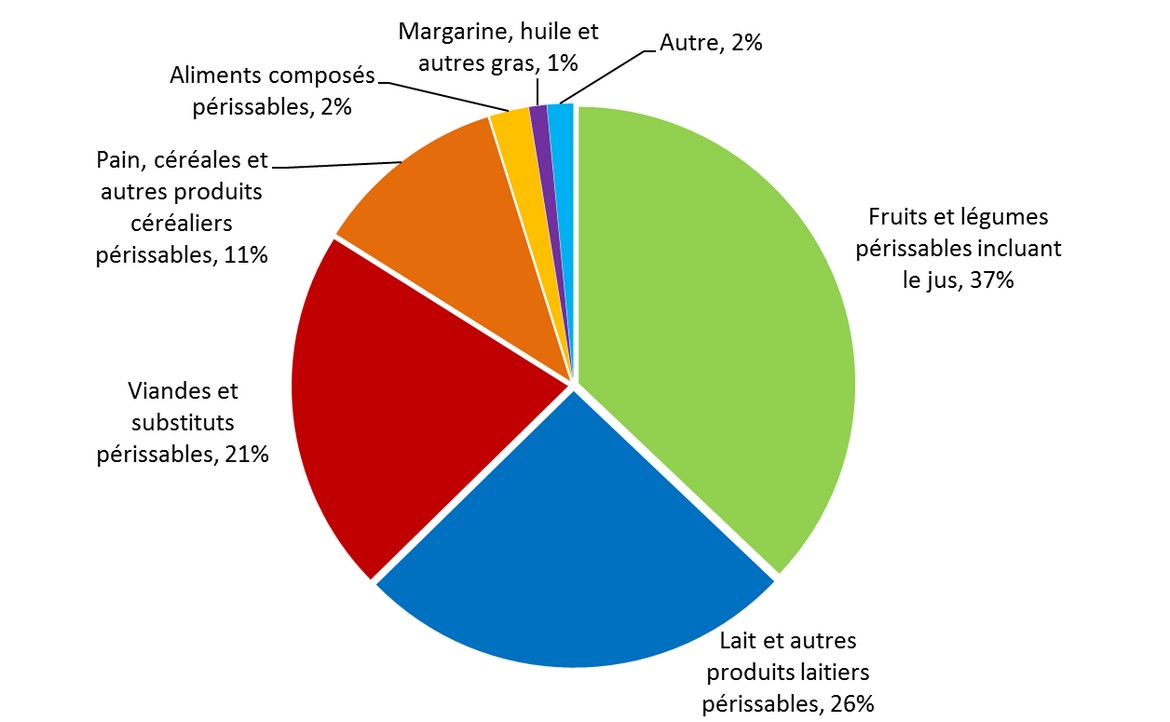 - Fruits et légumes périssables, incluant le jus: 37 %
