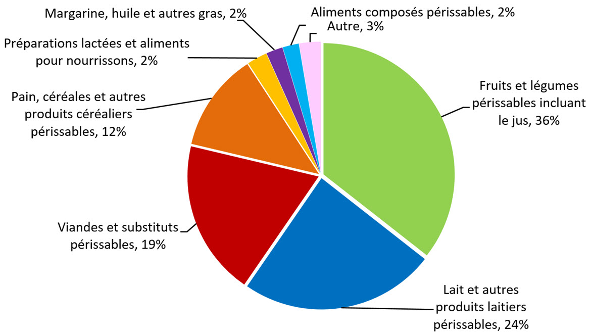 • Fruits et légumes périssables, incluant le jus : 36 %